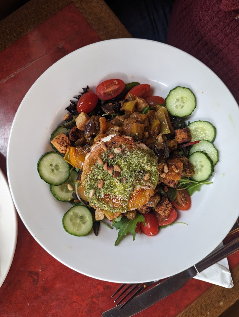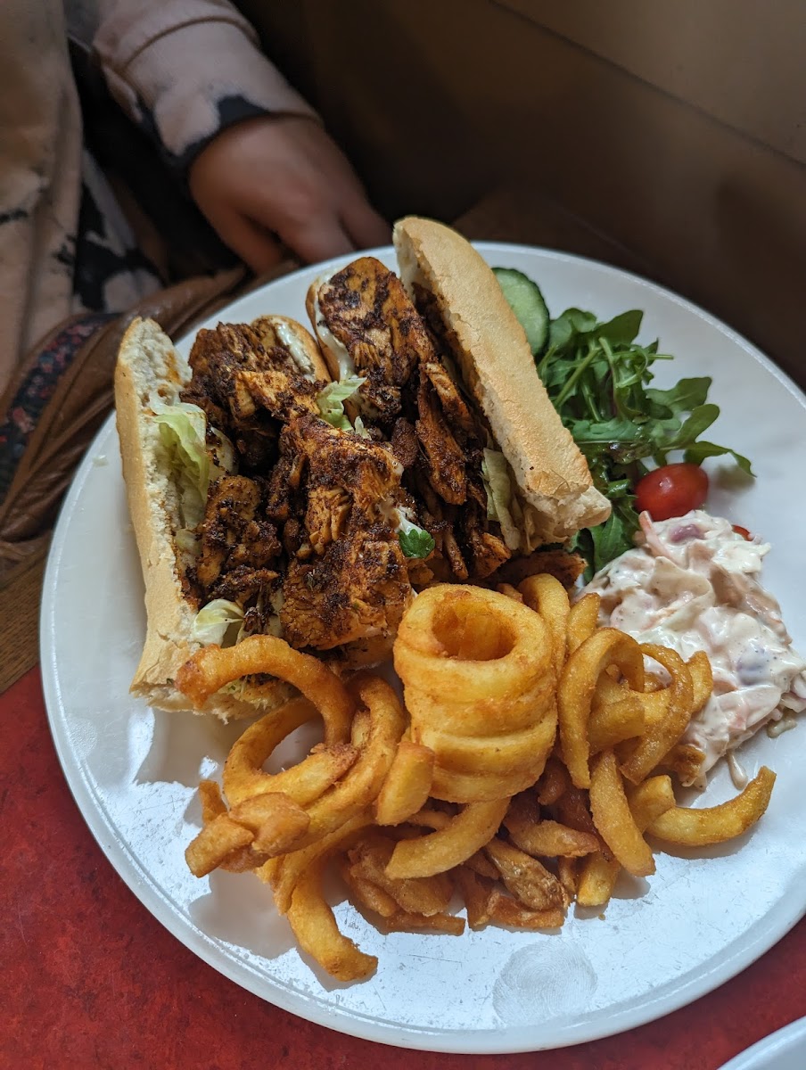 A perfect stop off for all kinds of reasons, for a tea, coffee and cake break or a lunch or brunch munch… Wide selection of Sarnies to Salads, Panini’s to Pies, baguettes to Baked spuds…all served in warm inviting surroundings and friendly staff… Their main day menu with so many tempting choices or their intriguing monthly ‘Special's Menu’ , often with choices from around the globe… My ‘GoTo’ is often the ‘Breakfast’ Panini with sweet potato fries , if not tempted by their latest ’ Special’…! Always busy, always tasty. Every day of the week…!